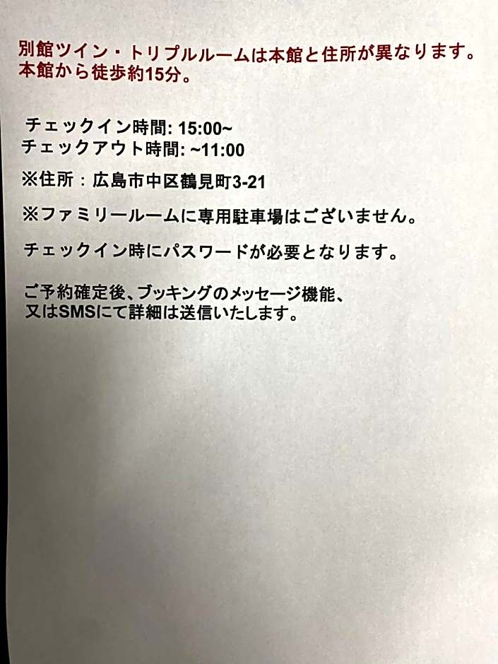 은 일본 히로시마에 위치한 환영받는 숙소로, 시내 중심에서 약 떨어져 있습니다. 주소는 Naka-Ku Nagarekawacho 3-5(나카구 나가레카와초 3-5)로, 나카구 중심부에 자리해 있습니다. 리뷰가 개 있는 이 호텔은 여행자들의 다양한 이야기를 품고 있습니다.